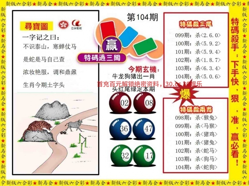 104期:九肖[龙马蛇鼠羊牛兔鸡]开:狗32